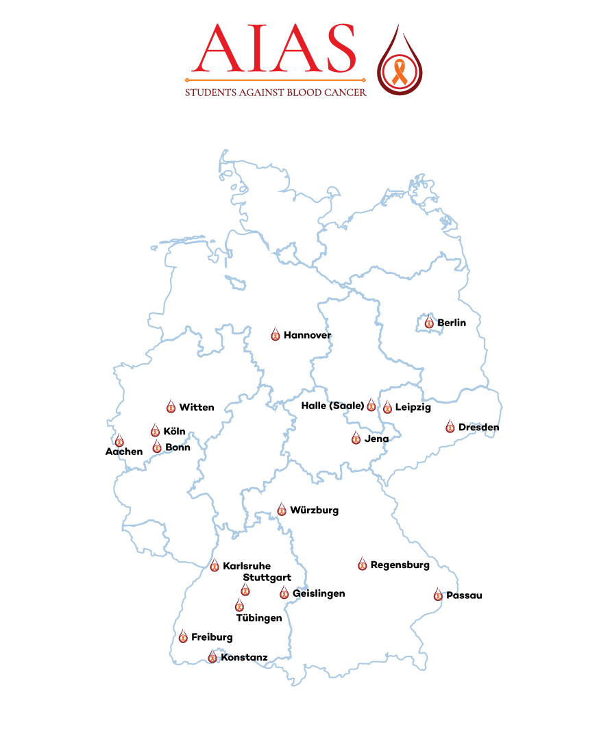 Mehr als 76.000 Registrierungen potenzieller Stammzellspender:innen und davon über 880 zweite Lebenschancen – das ist AIAS Deutschland! Die Studierendeninitiative supportet uns bei der Suche nach Lebensretter:innen an deutschen Hochschulen, und das mit viel Herzblut und vor allem mit ganz viel Spaß. Ein Ehrenamt neben dem Studium, das Leben rettet. Und du kannst mitmachen!
