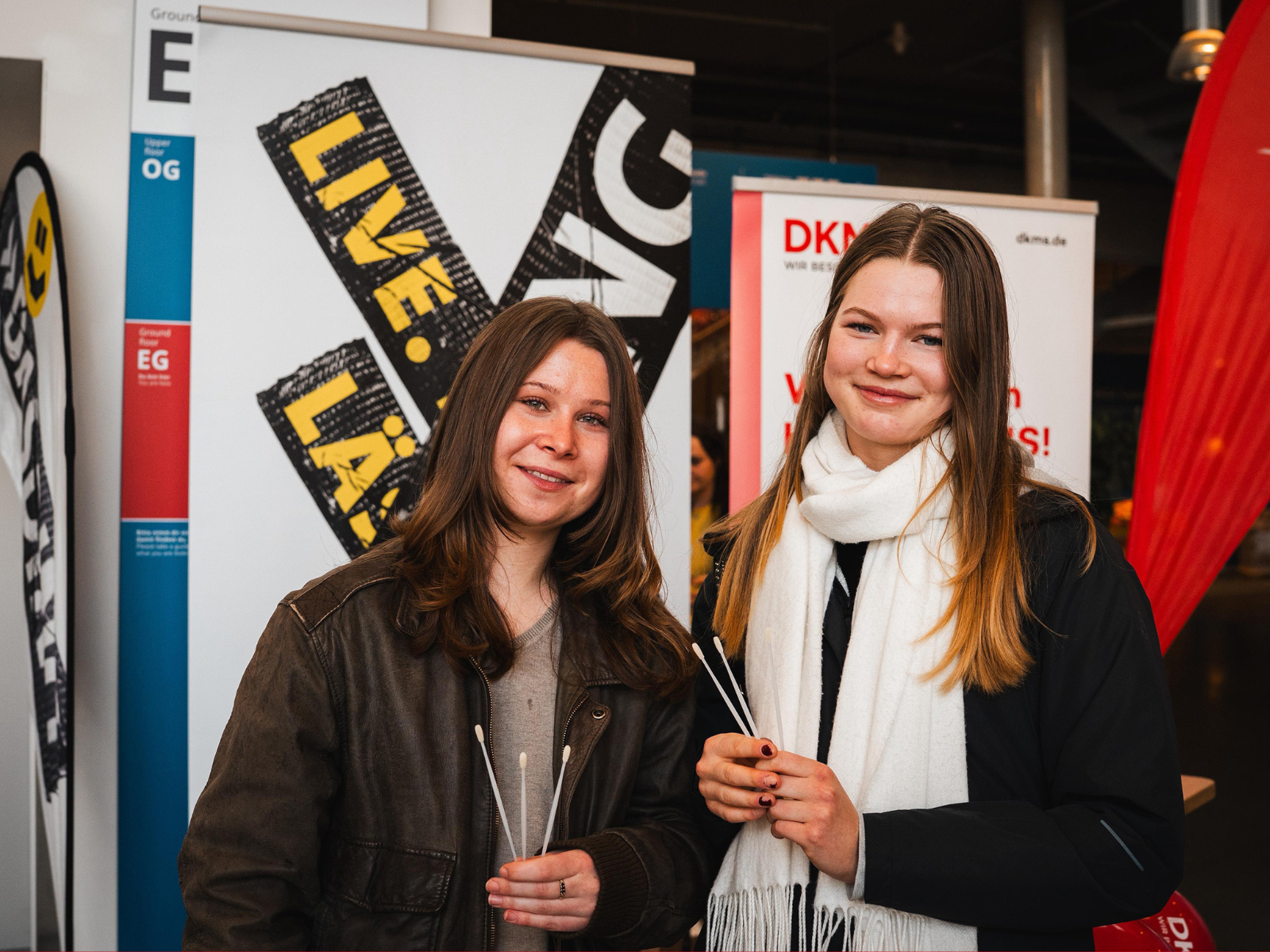 Marco traf auf viele bereitwillige junge Menschen, die sich registrieren lassen wollten – dabei war auch stets Unterhaltung geboten. Im Kino in Trier beispielsweise fragte er die Besucher:innen nach ihrem Lieblingsfilmzitat, während sie gerade den Wangenschleimhautabstrich durchführten. Die Herausforderung dabei: sich trotz Wattestäbchen im Mund bemühen, ihm deutlich zu antworten. Im Freizeitpark gab es für Maxi, die sich registrieren ließ, eine Achterbahnfahrt ohne Warteschlange.
