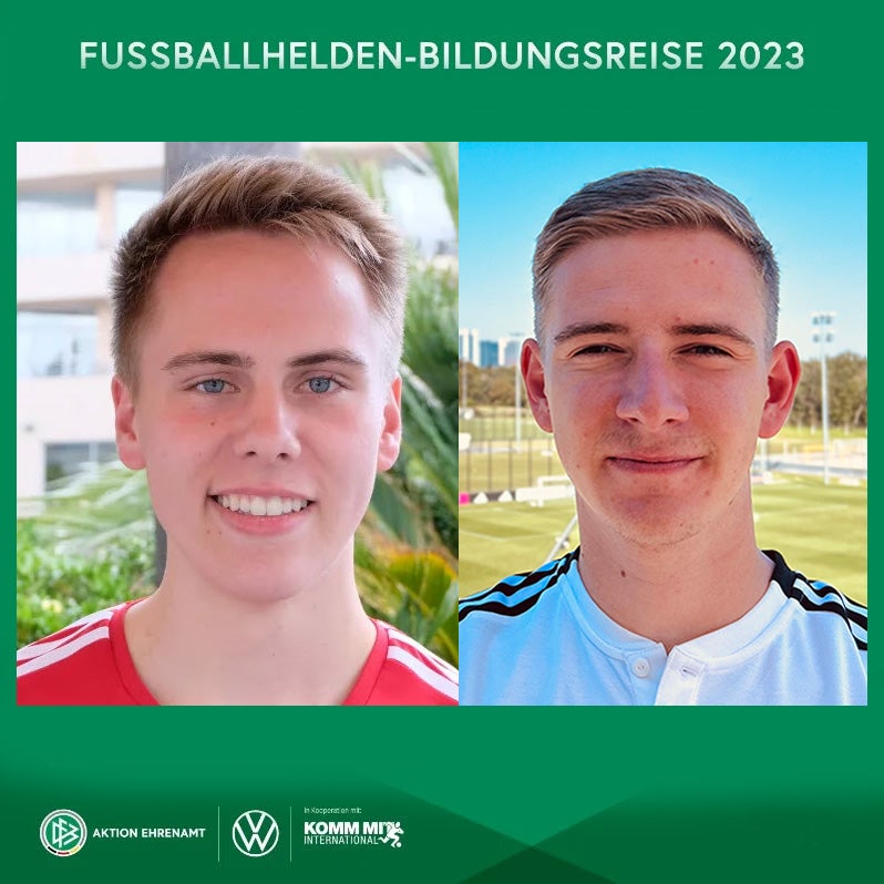 So registrierten sich 2023 die beiden "Fußballhelden" Timo Lau (22) aus Hamburg und Alex Schindler (27) aus Klettbach/Thüringen nach unserem DKMS Vortrag vor Ort als potenzielle Stammzellspender. Zwei Jahre später wurden beide tatsächlich gebraucht – und spendeten ihre Stammzellen, um an Blutkrebs erkrankten Patient:innen eine zweite Chance auf Leben zu geben.