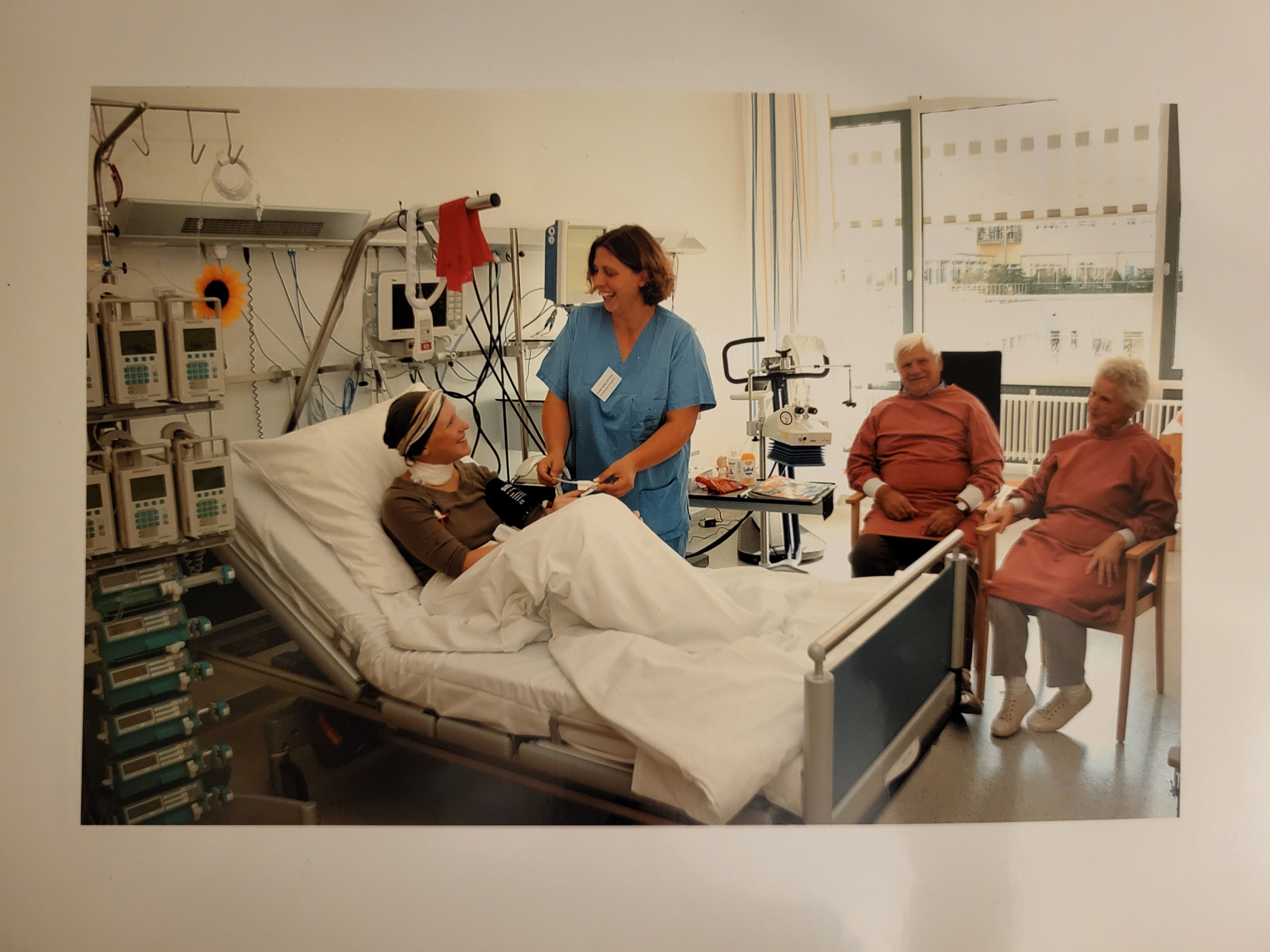 Zwei Monate blieb die junge Frau im Krankenhaus, bekam Chemotherapie und feierte sogar ihren 21. Geburtstag auf Station: „Ich sag‘s wie‘s ist, meine Reaktion war die Aussage an meine Familie ‚Ihr könnt mir zum Geburtstag dieses Jahr eine Perücke kaufen‘“, erinnert Christina sich. Währenddessen leiteten die Ärzt:innen die Suche nach einer passenden Stammzellspende für Christina ein. In dieser fremdbestimmten Zeit konnte Christina nicht nichts tun: „Ich wollte die Zeit, die ich habe, nutzen“, sagt sie. Das Treckingbike in ihrem Zimmer auf Station hielt sie fit. Der tägliche Besuch und ihr Freund, der sie auch in dieser schwierigen Zeit nicht alleine ließ, gaben ihr ein bisschen Sicherheitsgefühl im Klinikalltag.